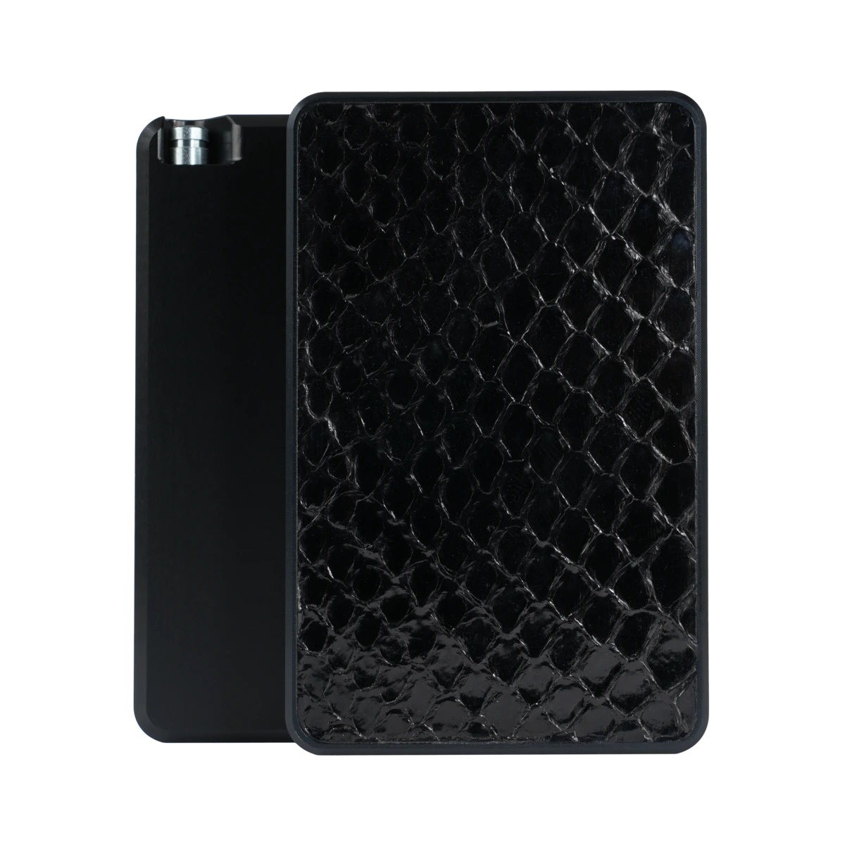 The Royal Box Python Black combines premium materials with refined design for individuals who seek elegance and practicality. Its exterior features genuine black python skin, giving it a textured, luxurious look. Matched with a hand-brushed aluminium body, the result is an accessory that feels premium and durable at the same time.